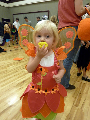 It didn't take her long to wake up and get right into the swing of things. Here's one of her prizes from our church carnival, lips with one of those whistle noise makers inside. All of our kids had fun with these.